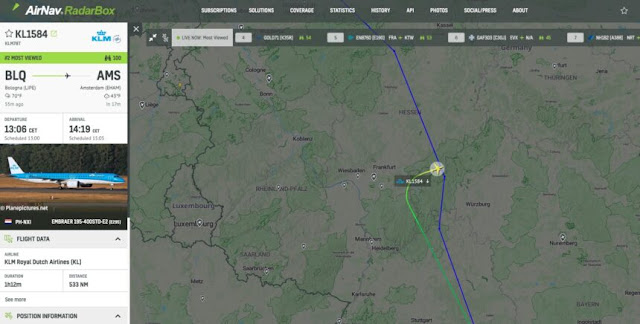 KLM flight KL1584 from Bologna to Amsterdam has declared an emergency.The aircraft used for the flight is a two-year-old Embraer 195 with registration PH-NXI.